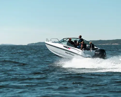 Styrt av lidenskapI Avant 605 får du en smidig og komfortabel dagsturbåt. Bowriderens heldekkende vindskjerm og åpne ...