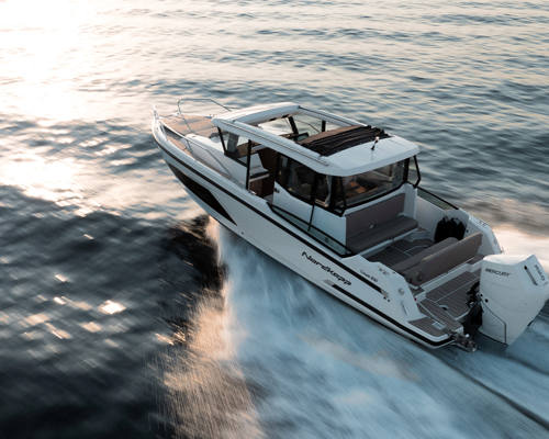 Med den revolusjonerende 7,6 liters Mercury V12 Verado 600 hk, progressive linjer og raffinert luksus leverer Nordkapp C...